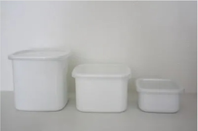 WFM-M 野田琺瑯ホワイトシリーズ密閉蓋【レクタングルM】 ---------------------- スクエアS 約10・6x10xh5.4cm 220㏄※1 スクエアM 約12.8x12.8xh8.4cm 700㏄ スクエアL 約12.8x12.8xh12cm 1.06L レクタングルS 約15.4x10.6xh5.8cm 380㏄ レクタングルM 約18.6x12.8xh6.3cm 620㏄ レクタングルL 約23x15.7xh6.9cm 1.18L 密閉蓋材質: ポリブチレンテレフタレート、シリコンゴム ---------------------- フタ本体(樹脂製)とシリコン製のパッキンが一体化 □特徴□ ①水漏れしない密閉性は、スープなど汁物の保存にピッタリ。 ②持ち運びにも便利。 ③海苔や昆布、煮干しなど湿気を嫌う食材の保存に最適。 ④食器洗浄機、乾燥機に使用可能! 閉める時はフタをしてからシリコンつまみ(フタ中央の丸い部分)を下に押してください。 開けるときはシリコンつまみを上に引き上げてからフタ本体をもってあけてください。 シールぶただと、熱に弱いので一緒に食器洗浄機や乾燥機にかけて変形させてしまった・・・という経験のあるかたも多いはず。 食洗機OK、密閉性が高まったので汁物にも強くなり使いやすさUP。 多くの人に長く愛されている野田琺瑯さんの琺瑯製品。 琺瑯の表情を損なうことなく新しい機能が加わって、生活の道具の1つとしてご愛用していただけるおススメの商品です。 ※1 容量は密閉時(シリコンつまみを下げた状態)の満水容量