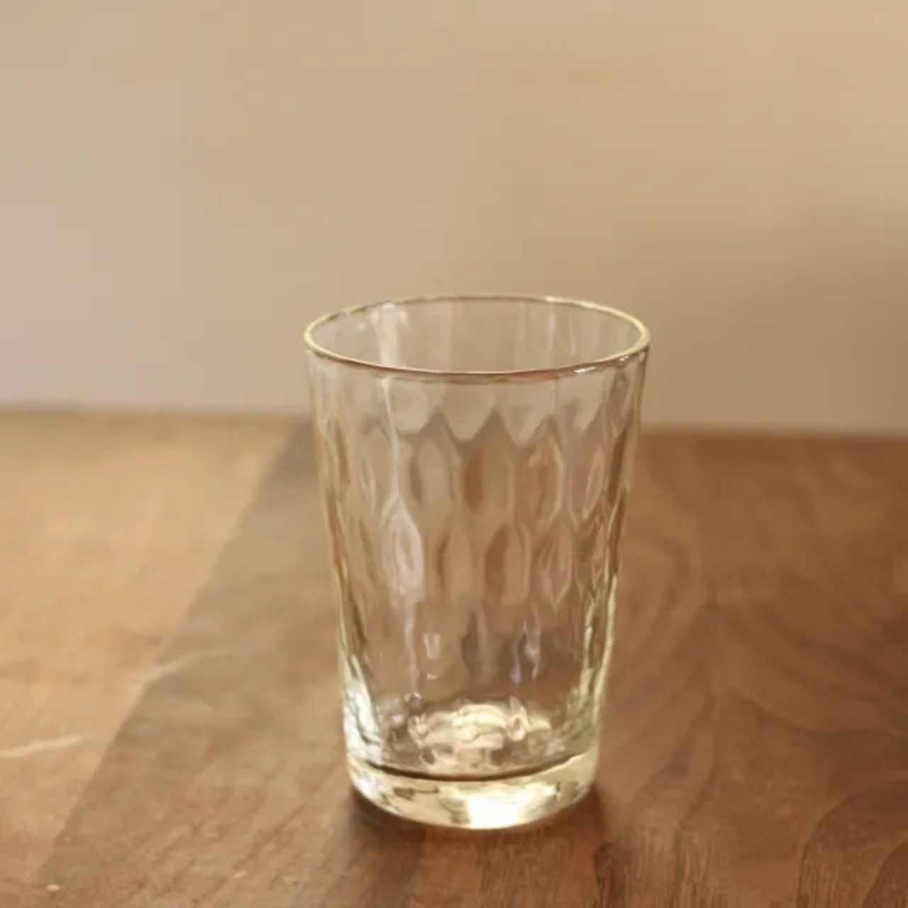 透明ではなくほんのりハチミツ色したガラスがとても印象的で手に取りたくなる。