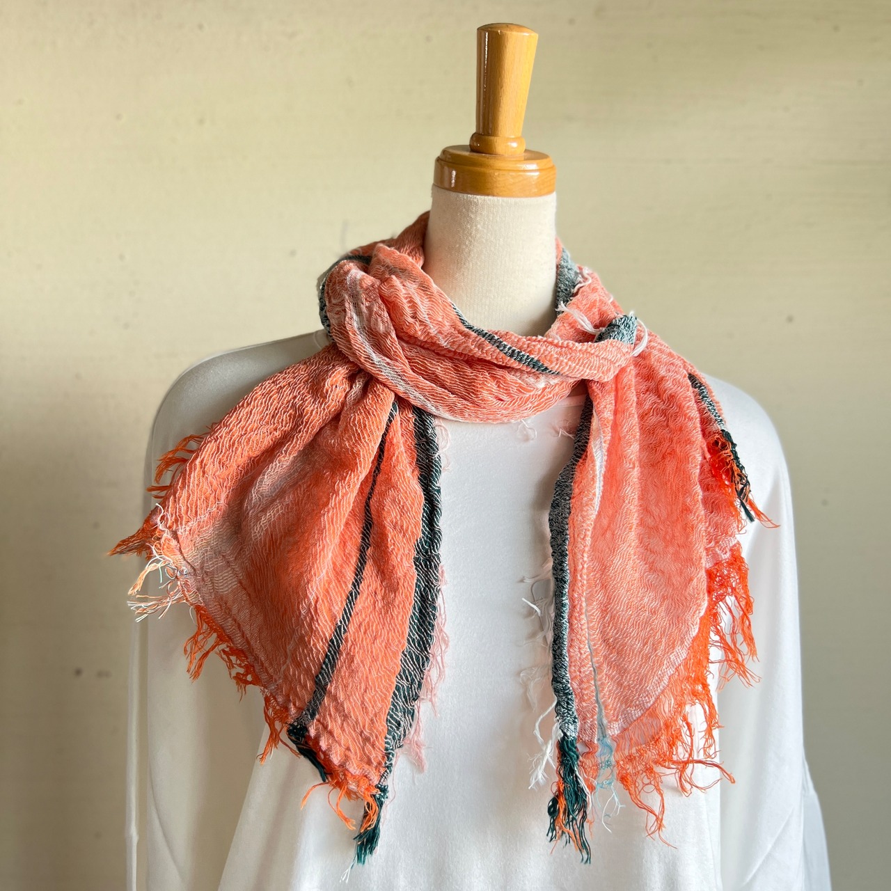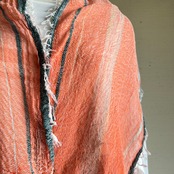 手間と時間をかけ、緩やかにじっくりと織り上げていきます。できるだけゆるくゆっくりと織って、ふんわりとやさしくやわらかく。色とりどりの糸を組み合わせて生まれるショールは年齢も性別も選ばない色にあふれた世にも自由なショール。織り上がれば裁断して、一枚一枚縫製し、洗って天日に干します。洗って干し、太陽の光を浴びると、空気を含んでふっくらとやさしい柔らかさに。