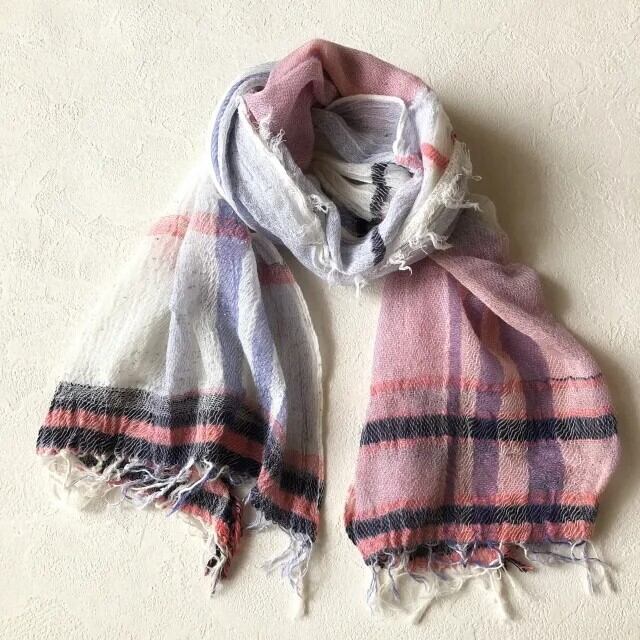 コットン100%のミドルサイズのショールはroots shawl BIGの幅を半分にしたサイズでさらりと使える気軽なサイズ感。