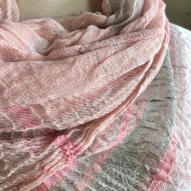 コットン100%のミドルサイズのショールはroots shawl BIGの幅を半分にしたサイズでさらりと使える気軽なサイズ感。