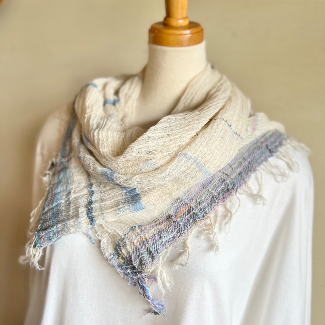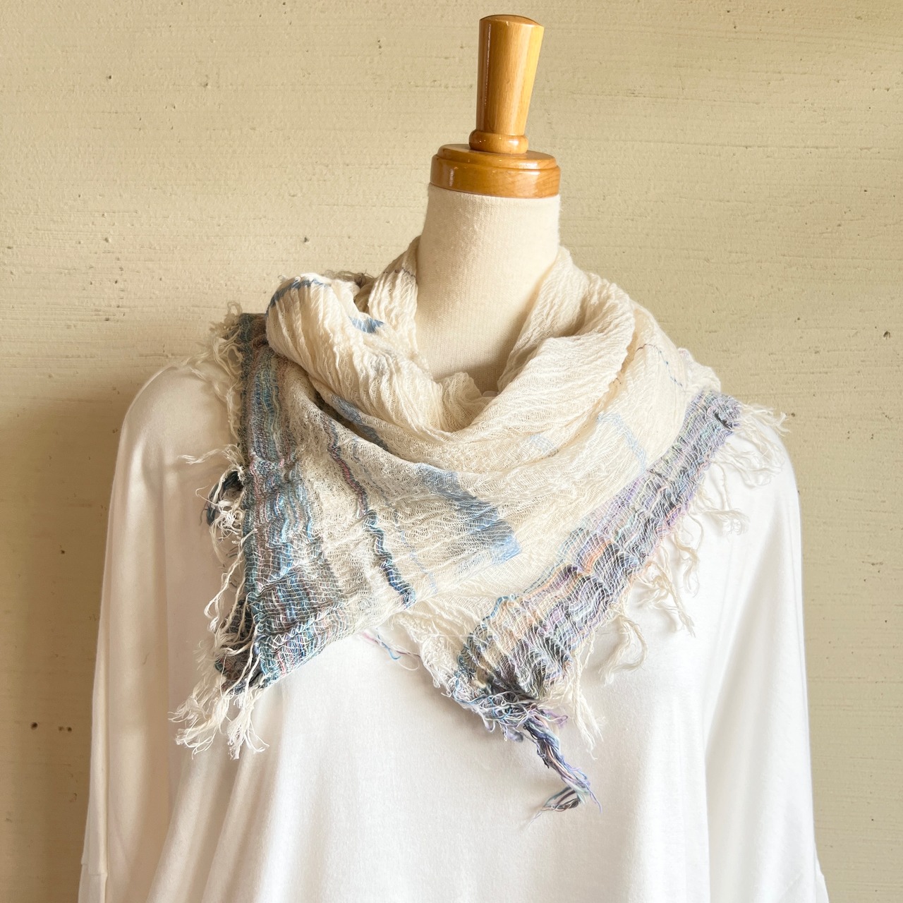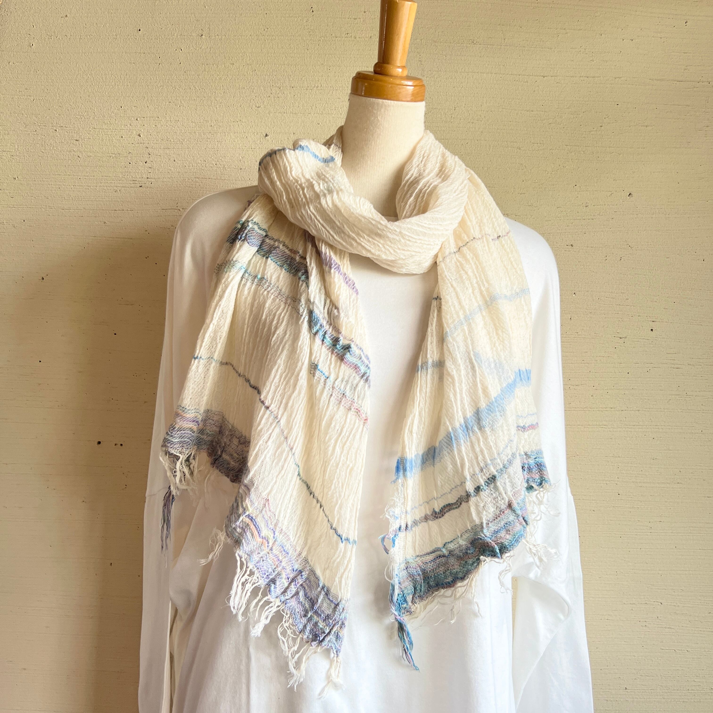 コットン100%のミドルサイズのショールはroots shawl BIGの幅を半分にしたサイズでさらりと使える気軽なサイズ感。