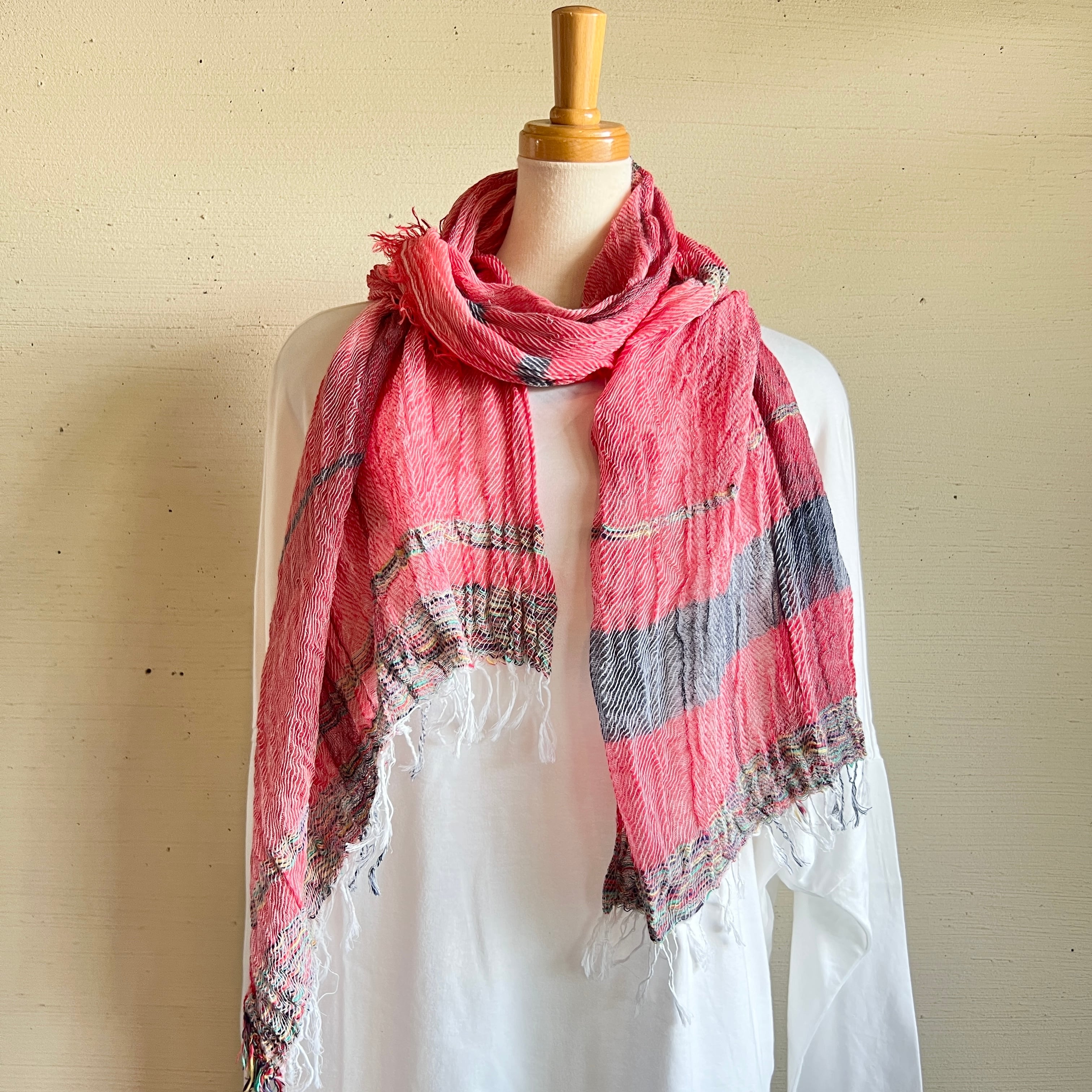 コットン100%のミドルサイズのショールはroots shawl BIGの幅を半分にしたサイズでさらりと使える気軽なサイズ感。