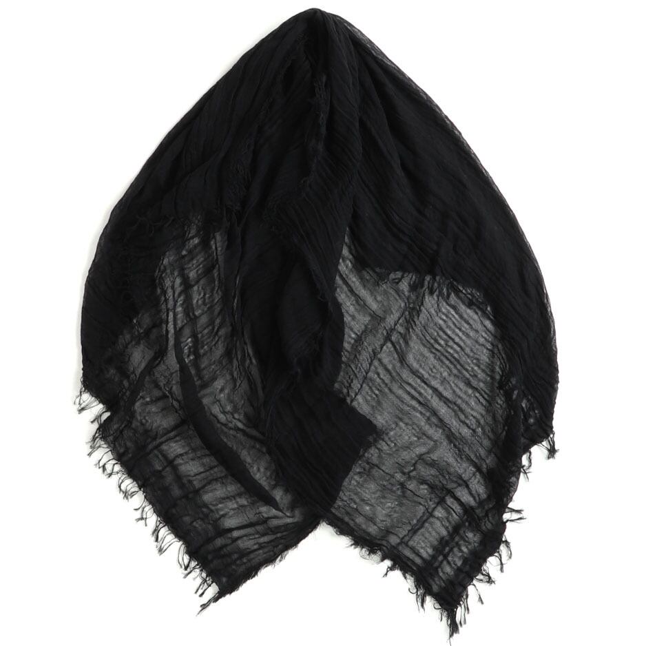 製品の特性上、アクセサリーなどに引っかけてループが出てしまうことがありますが縦横斜めにショールを引っ張ってもらうと戻ります。それでも戻らない場合は他の糸を切らないように、戻らない部分だけハサミでカットしてください。
