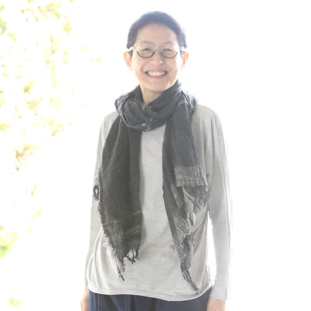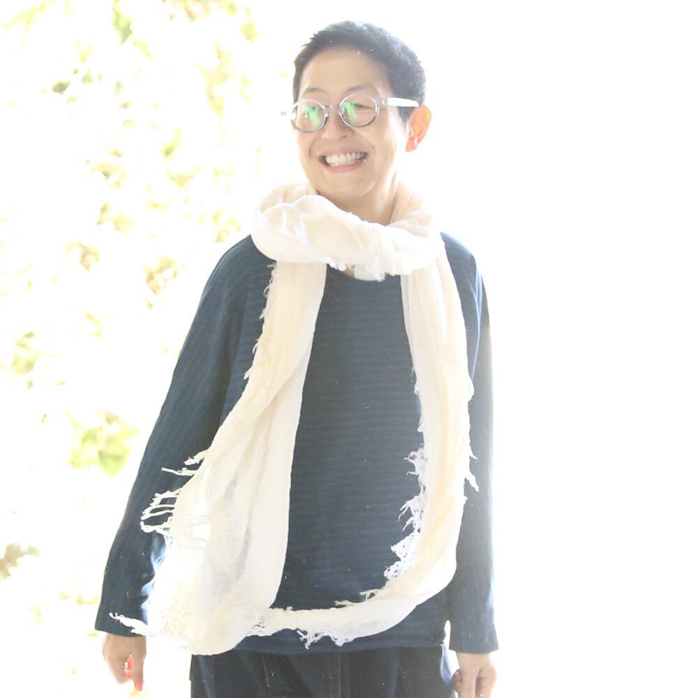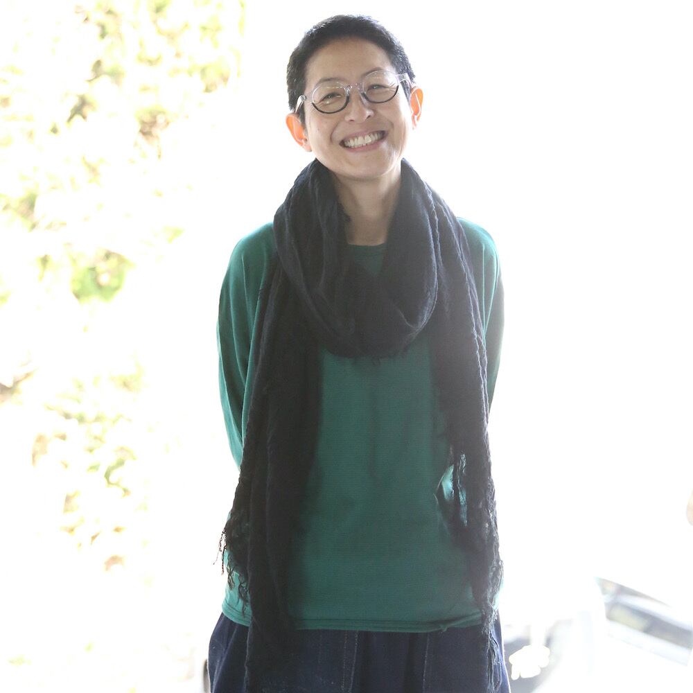 先染め糸から古い織り機や編み機を使ってオリジナルの生地を自分で作り、それを使ってショールやウェアなど唯一無二の作品を作り上げています。原料の綿花の栽培にも取り組んでいます。
