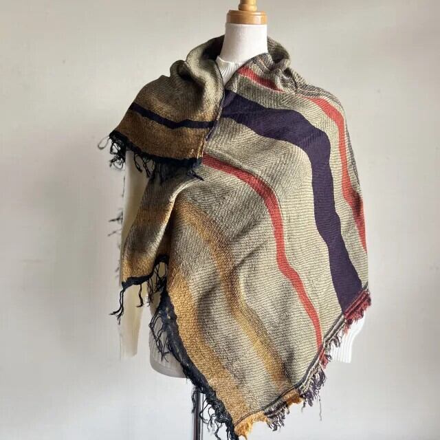 縦糸にコットン、横糸にウールを使用しゆるやかに織り上げられたショールです。