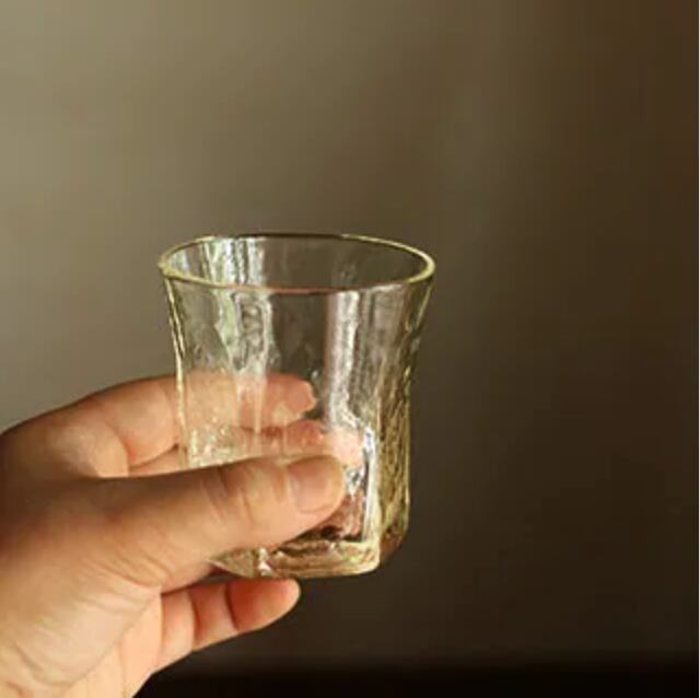 透明ではなくほんのりハチミツ色したガラスがとても印象的で手に取りたくなる。
