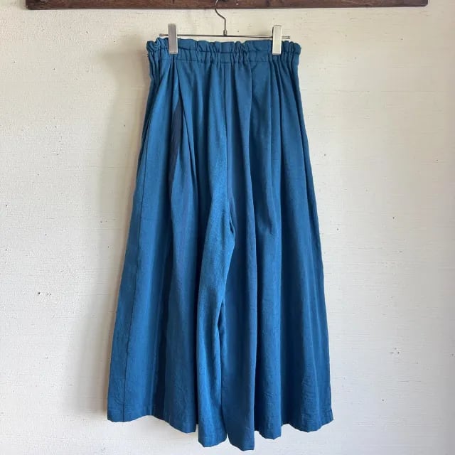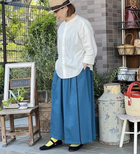 tamaki niimeのウエアの中でも一番最初にできた、言うなれば「ルーツパンツ」。tamaki niimeの生地をシンプル且つ贅沢に使った絶対的定番。シンプルな形でカジュアルにも上品にも履くことができます。 働く女性に向けた動きやすいパンツとして当初はデザインされました。
