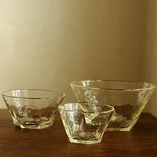 多少の歪み、気泡や滑らかな凸凹などは吹きガラスの味わいとしてお楽しみください。