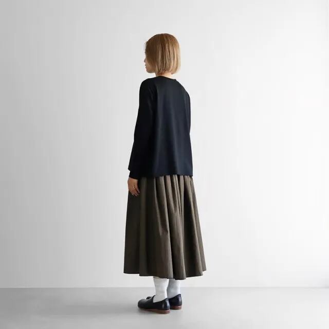 ゆったりと身幅をとったワイドシルエット&スクエアの形になった人気のCS104をベースにした長袖カットソー。着丈は少しショート目に、身幅はたっぷりととられた贅沢な仕様で、肩が自然に落ちるゆったりとしたシルエットが特徴です。体を包み込むようなゆるやかなラインが特徴です。