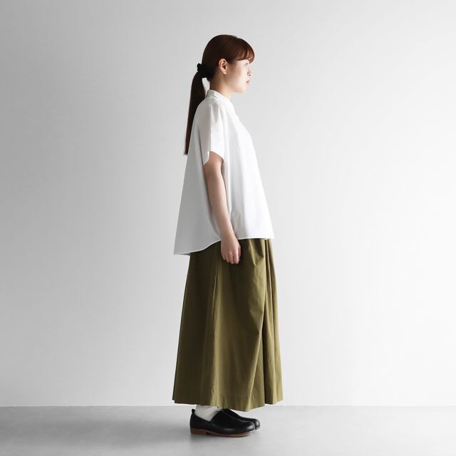 しなやかで落ち感のある生地で、適度なドレープ感が生まれ、カジュアルな印象とのコントラストが、独特の雰囲気を持つブラウスです。