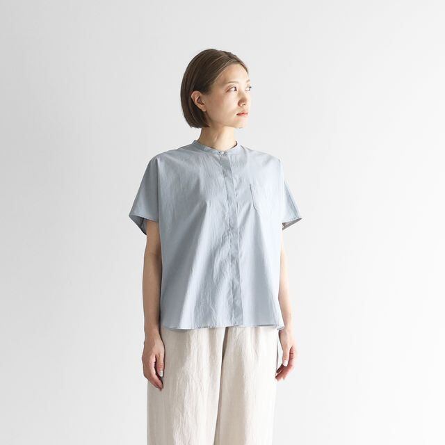 ロゴ刺繍は左裾にさりげなくあしらわれ、シンプルながら細部のこだわりを楽しんでいただける一着です。