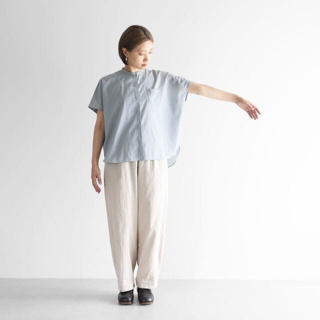 たっぷりとした身幅と自然なドレープ生地を贅沢に使ったコクーン型のブラウス。ノースリーブタイプのデザインとなりますが実際に着用いただくと半袖くらいの丈感となります。