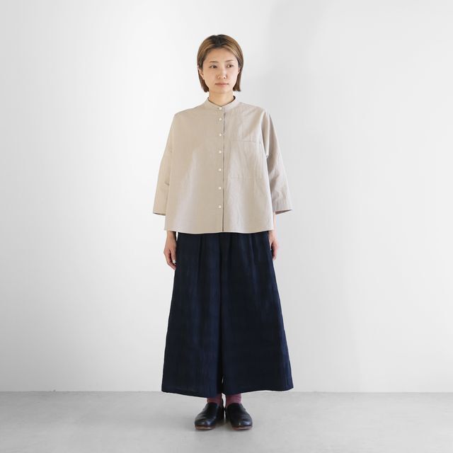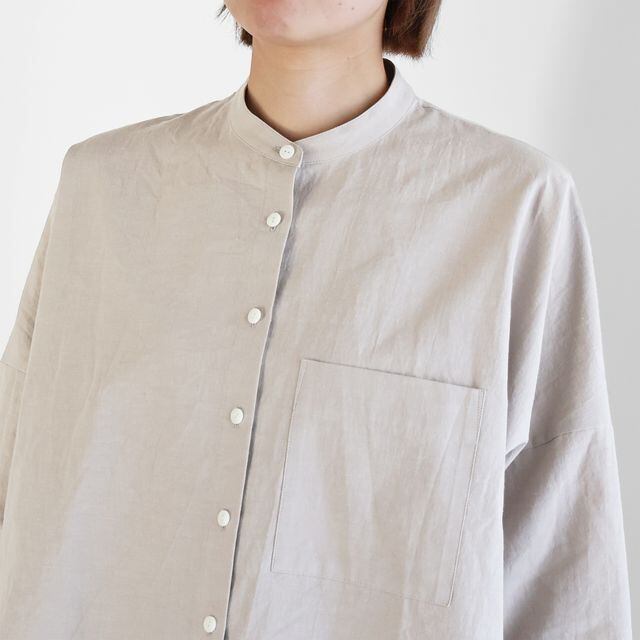デザインは、たっぷりと身幅をとったゆったりとしたラインのブラウスで、落ち感のある素材感を楽しめるシルエットになっています。