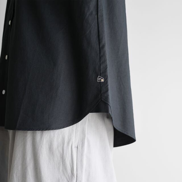 ロゴ刺繍は左裾にさりげなくあしらわれ、シンプルながら細部のこだわりを楽しんでいただける一着です。