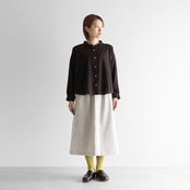 ウール素材は、着ていると体の熱を吸って溜め込んでいきます。ウール100%のこちらのブラウスは、着ているとポカポカと暖かくなってくるもので、前を開けて羽織っていただければ、秋口・春先のカーディガンのように羽織りものとして重宝していただけます。
