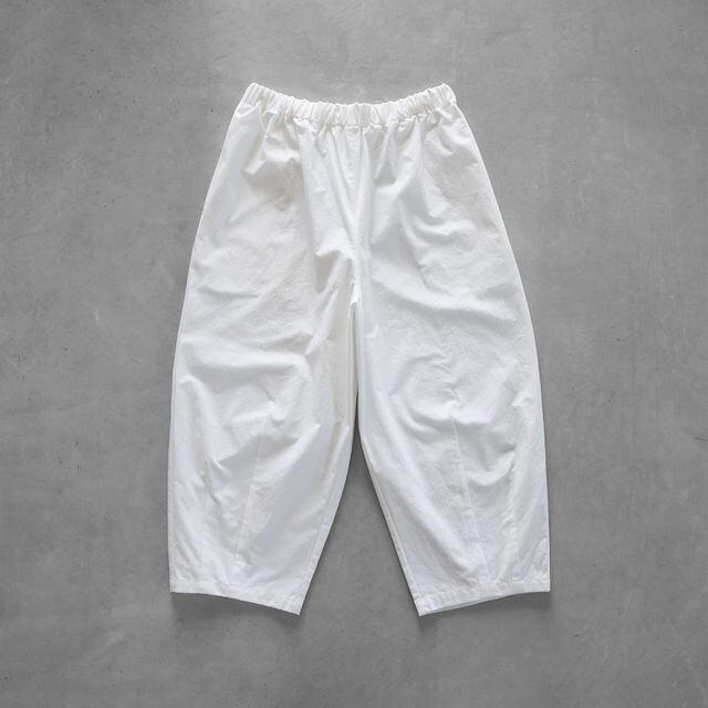 低速のシャトル織機で織られたバフクロスを使用したシンプルなバルーンパンツです。
