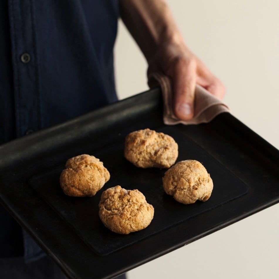 いろんなおやつが手軽に作れる粉、その名も“おやつこ”。北海道の契約農家さんが育てた小麦の全粒粉に、体を冷やさないと言われる北海道産てんさい糖、直火釜でじっくり焼き上げふられたオホーツク海水の焼塩、アルミニウムフリーのベーキングパウダーを配合しました。定番のホットケーキをはじめ、ふわふわカップケーキ、ざくざくスコーン、ふかふかどらやき、まんまるドーナッツなど、素朴でおいしいおやつがあっという間にできあがり!