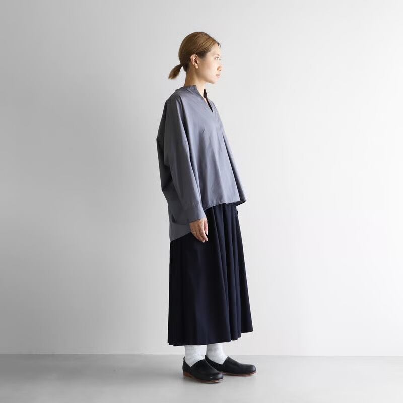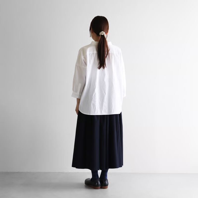 シンプルなロングスカートで、生地をたっぷりと使いゆったりとしたシルエットが特徴です。