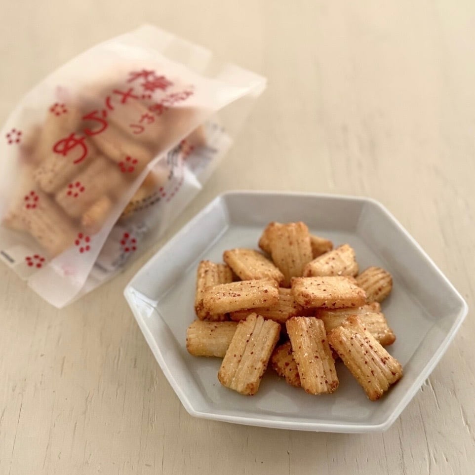 精米したての国産もち米を使い、 さくっと香ばしく焼き上げたあられに、 紀州南高梅の梅肉と粗糖をまぶしました。 もち米の自然な旨みとともに、 梅のさわやかな香りと酸味が広がり、 粗糖のざくざくした食感がアクセント。 南高梅の梅干としそ梅酢だけで作った梅肉、 国産丸大豆たまり醤油、もち米あめなど、 素材のおいしさを生かしています。