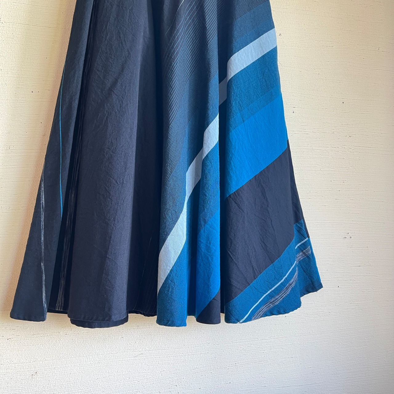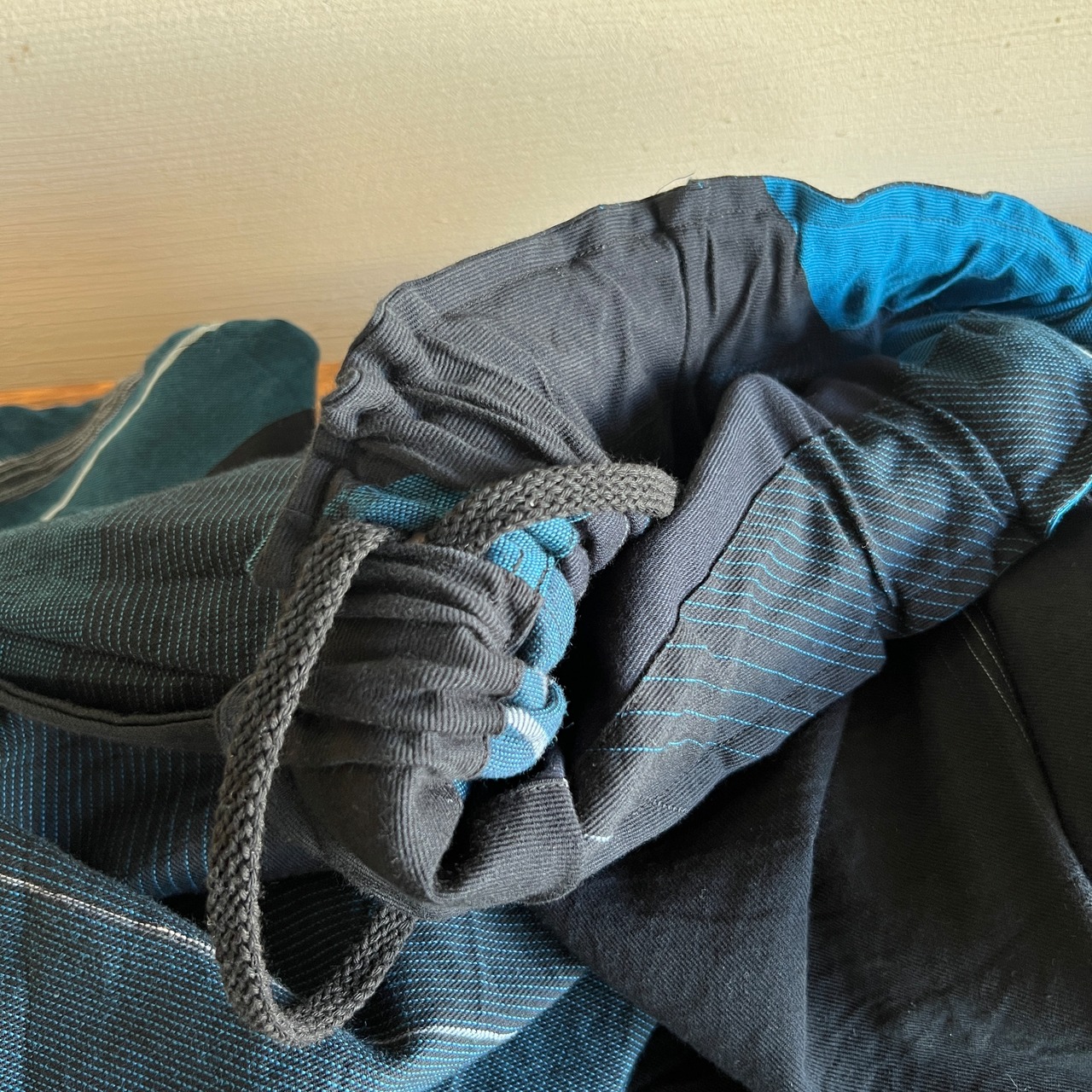 先染め糸から古い織り機や編み機を使ってオリジナルの生地を自分で作り、それを使ってショールやウェアなど唯一無二の作品を作り上げています。原料の綿花の栽培にも取り組んでいます。