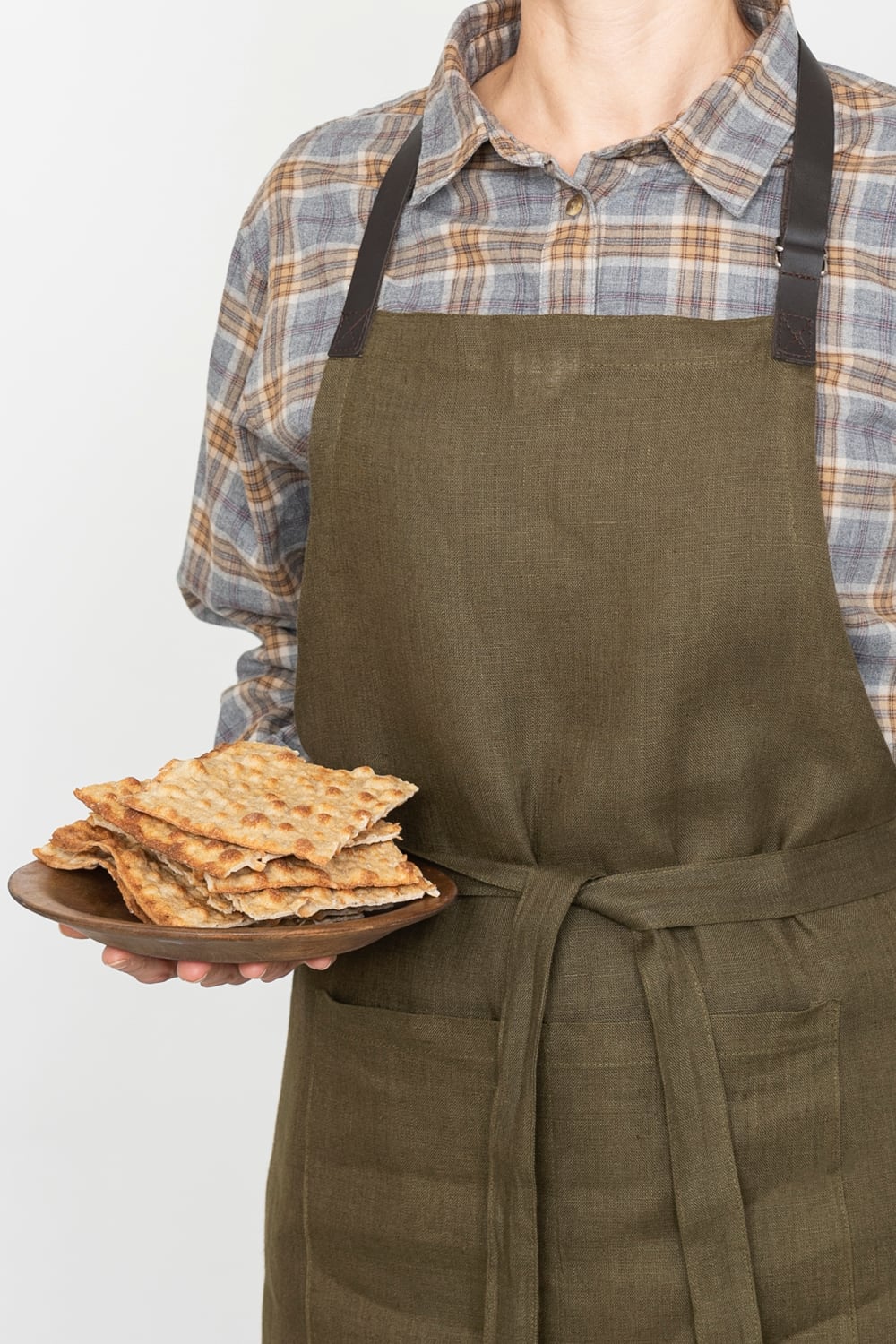 フルエプロンに比べ丈が短く、身幅も狭めなので、軽くて動きやすいのが魅力です。