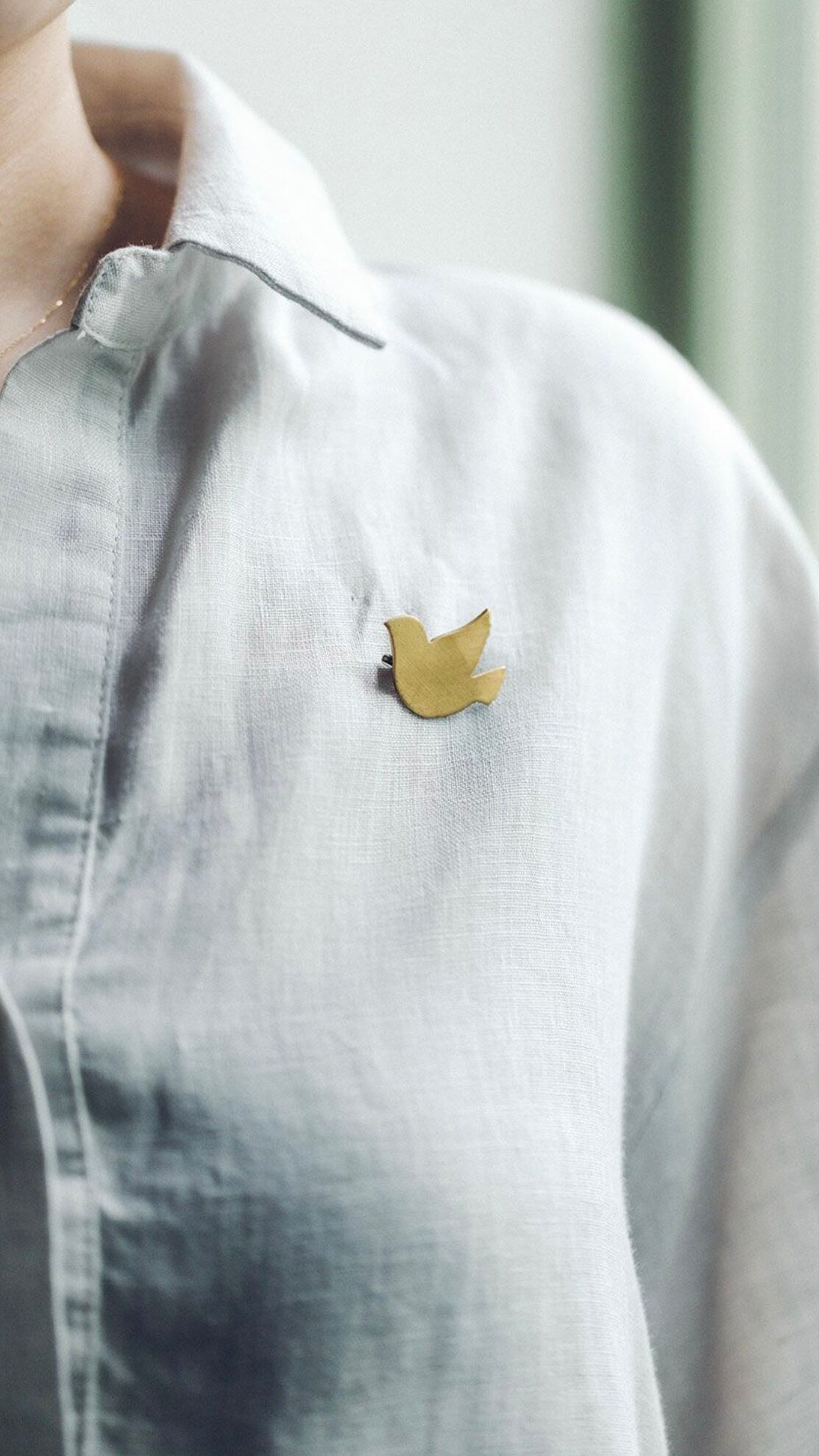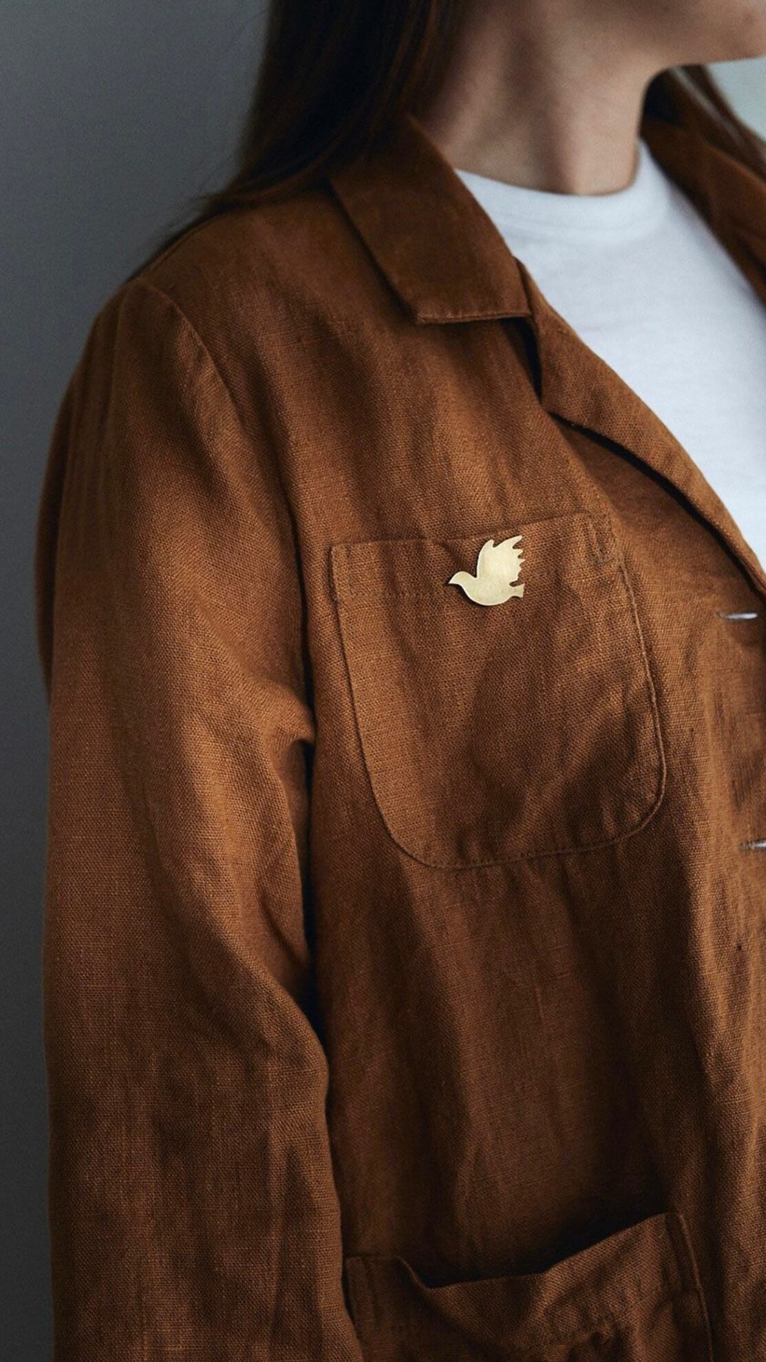 シルエットが可愛らしいの鳥のブラスブローチ。