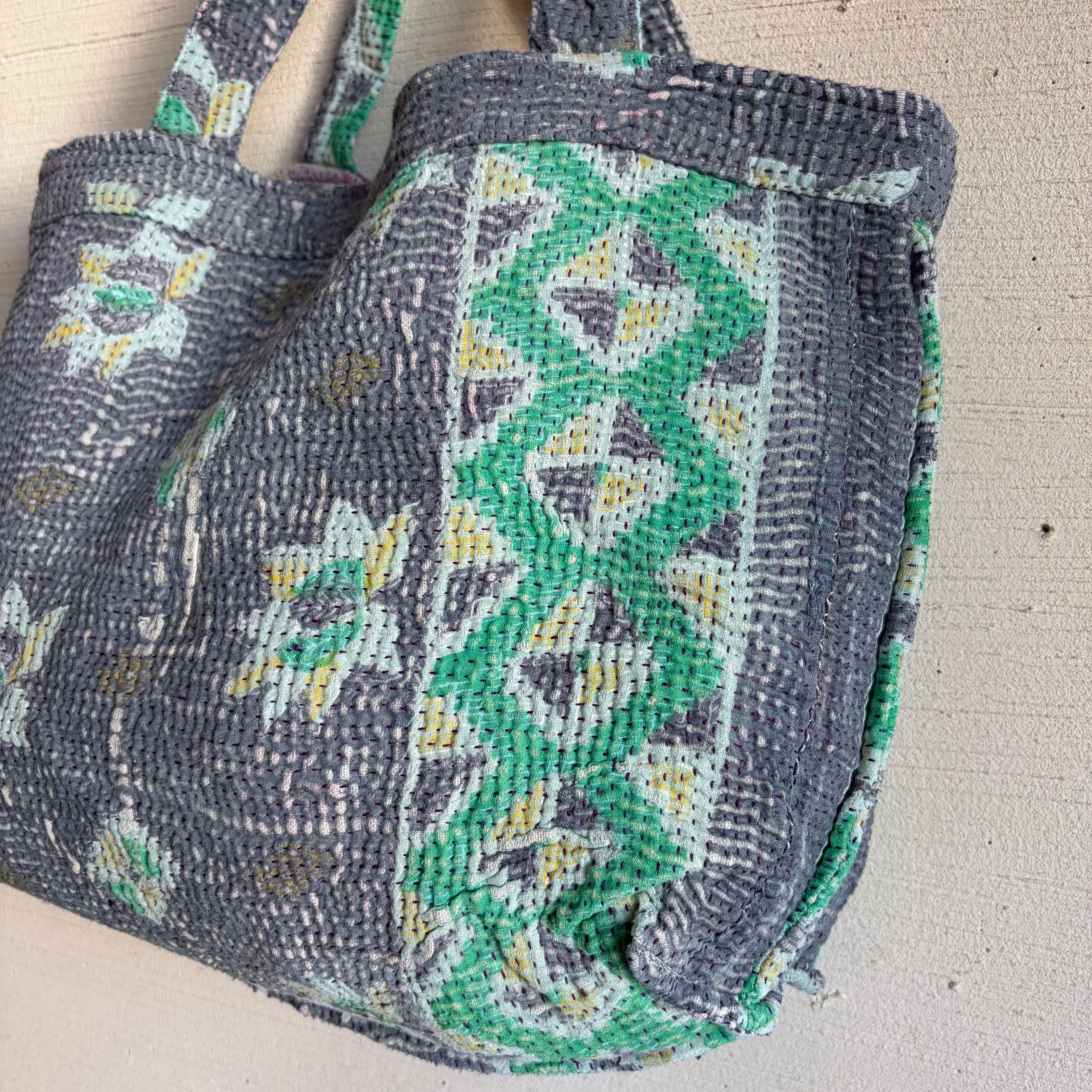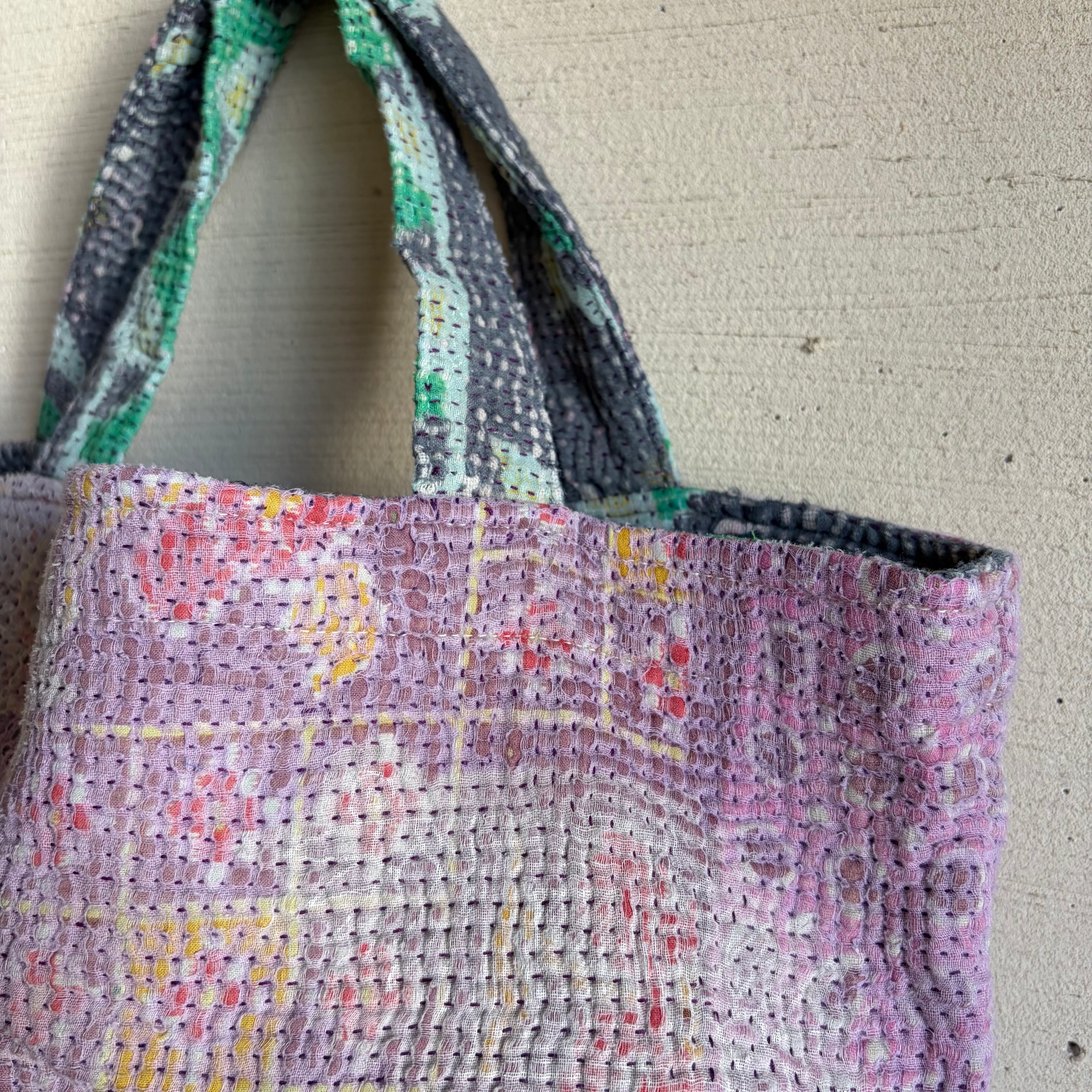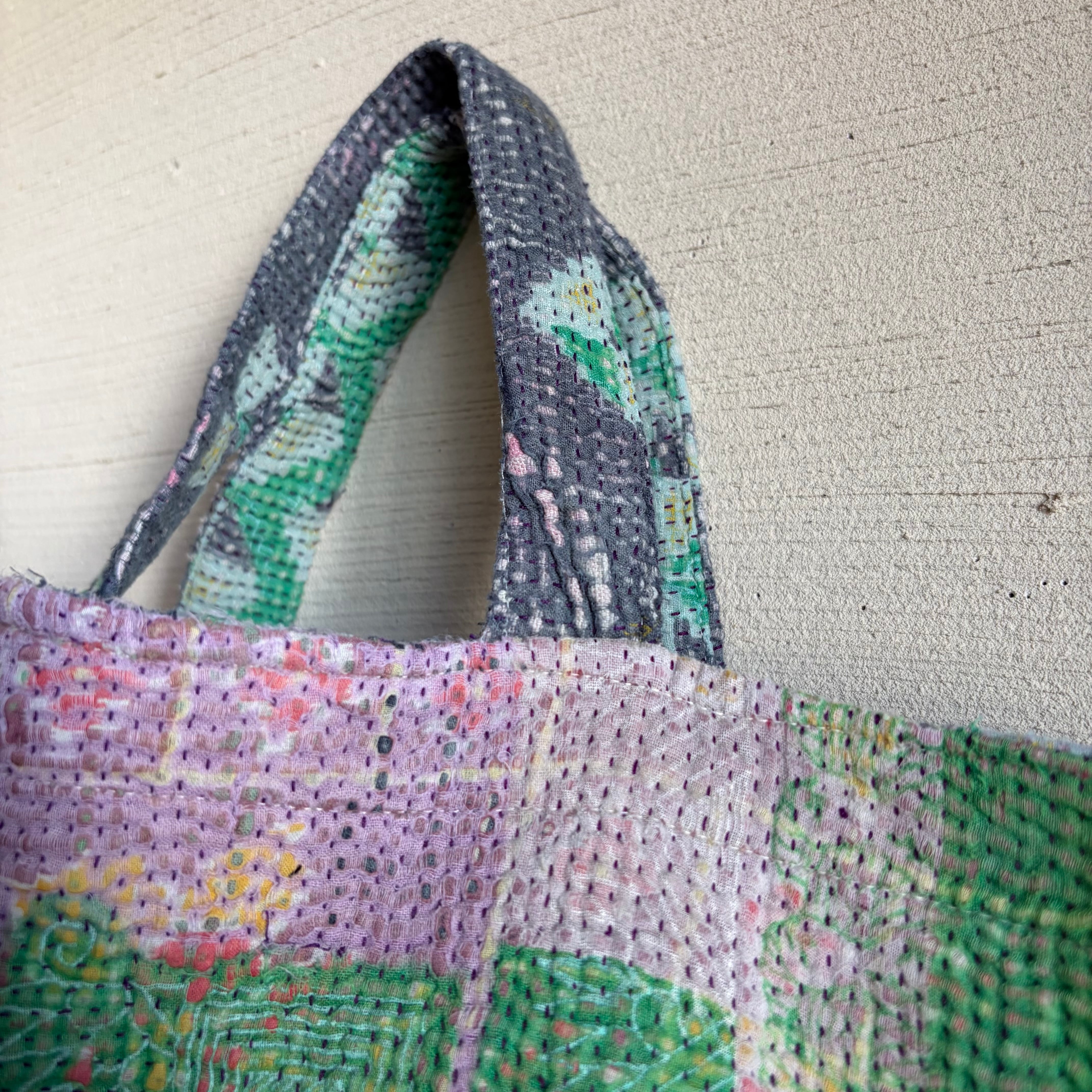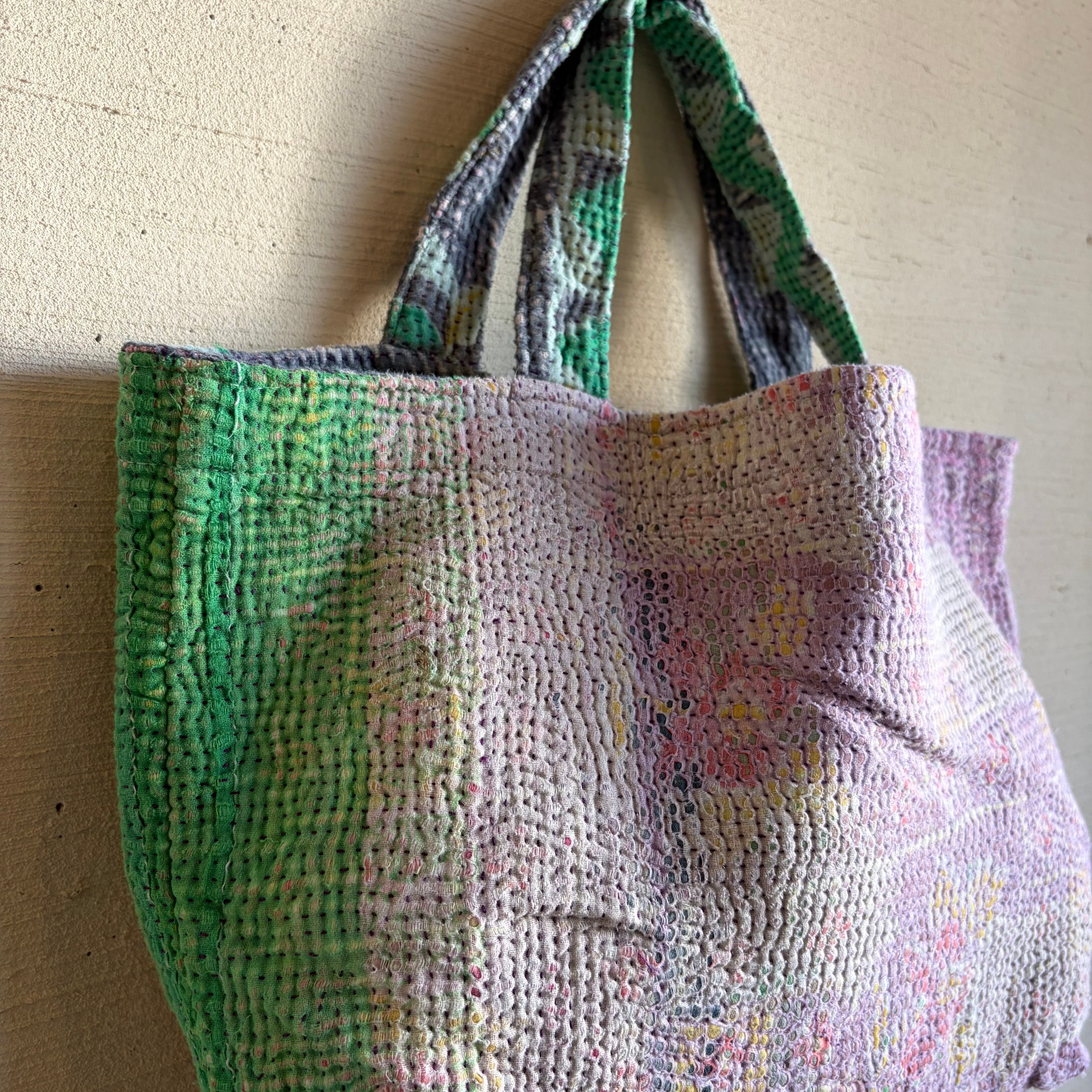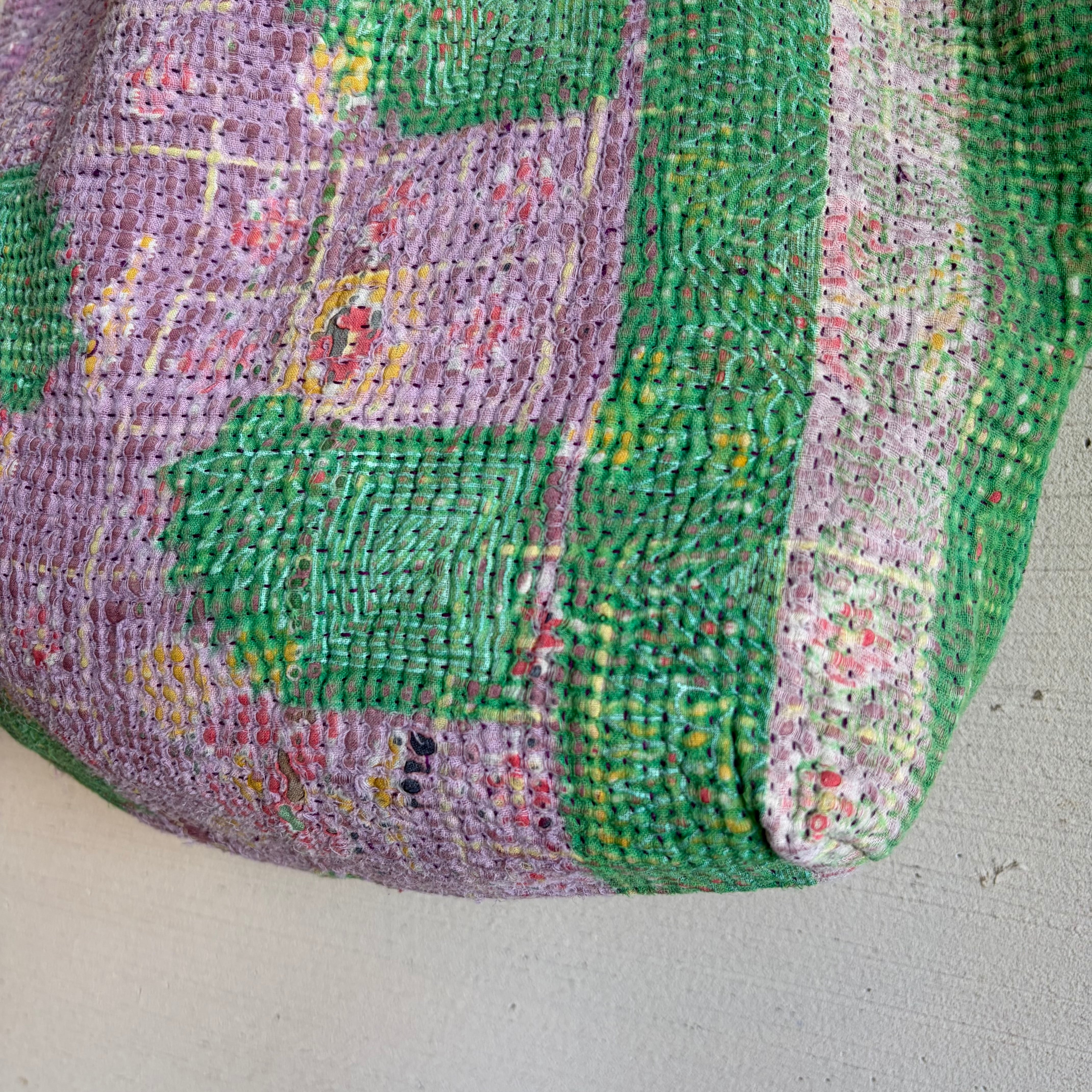 カンタは インドのベンガル地方の女性が家の中でサリーを重ねて刺し子刺繍を施し、主に赤ちゃんのおくるみや敷物として使ったのがはじまりだそう。