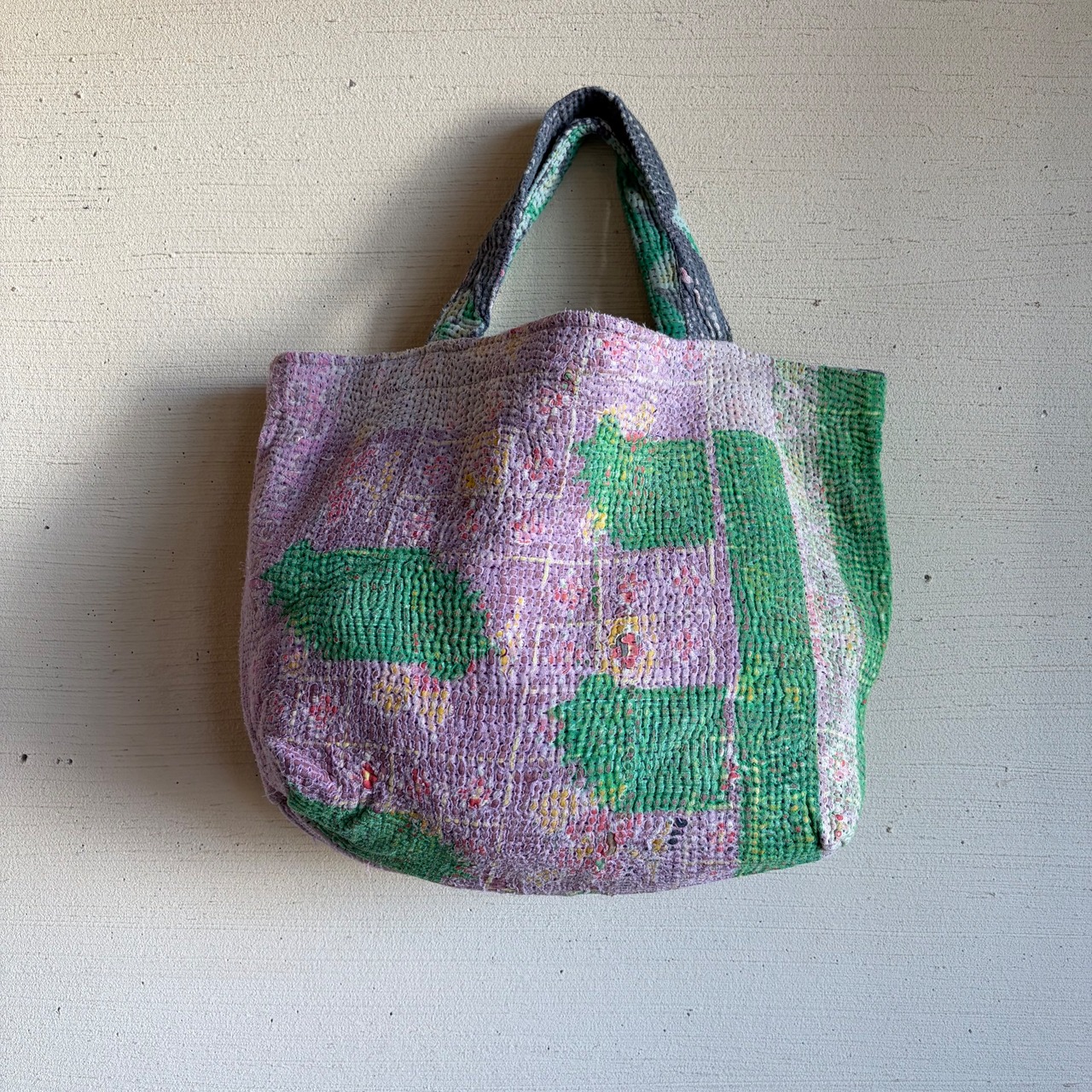 ヴィンテージの布をベースに色鮮やかな生地を幾度にも重ね合わせて、