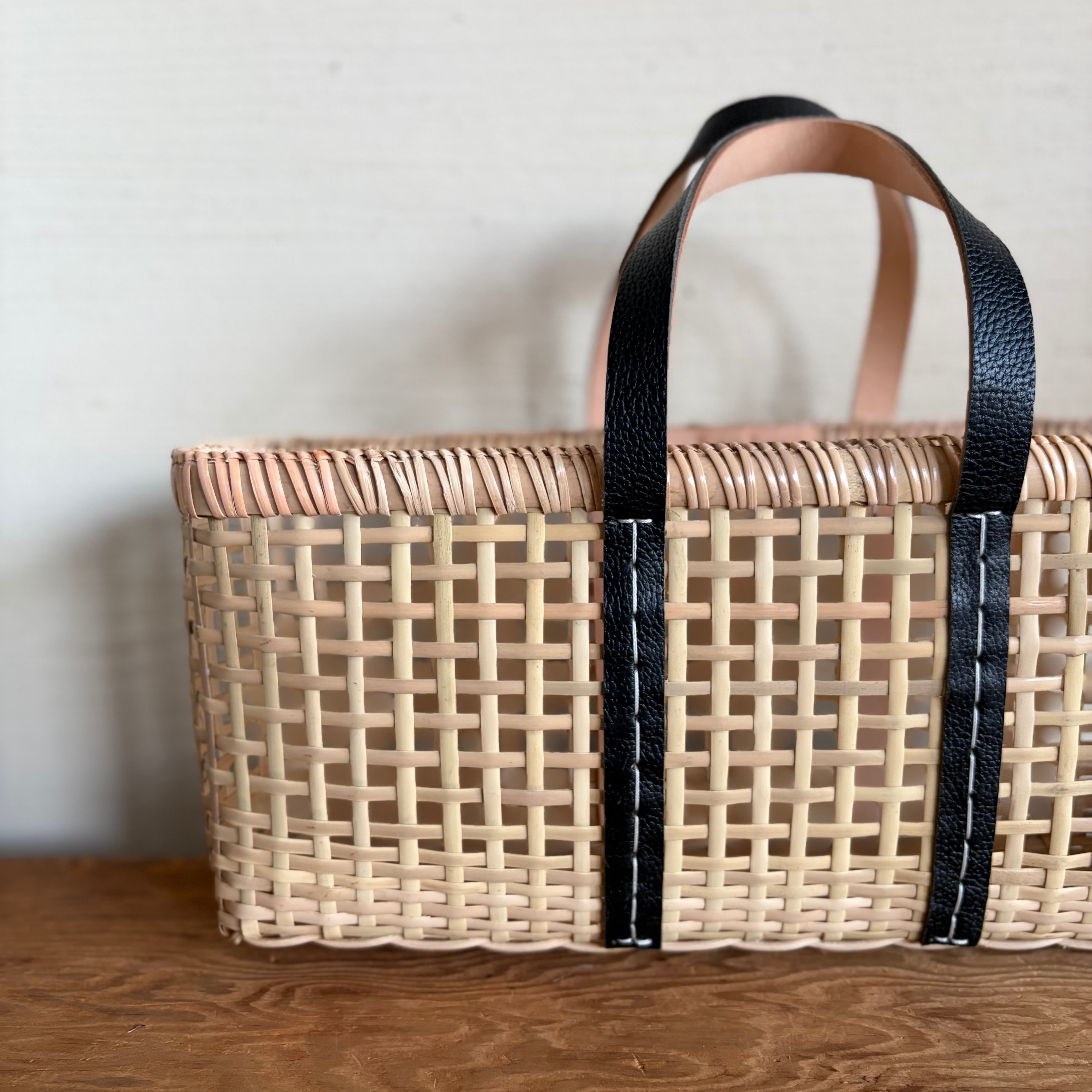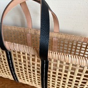 持ち手からサイドにかかる革が特徴です。