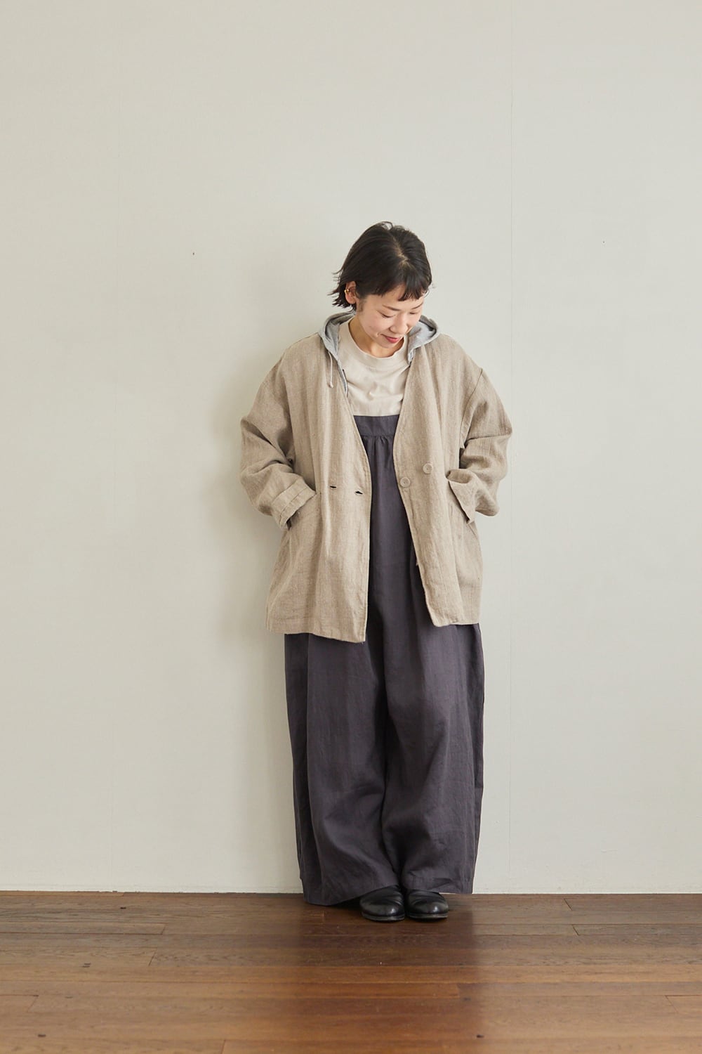 着脱しやすく、ゆったりとしたシルエットで体のラインを拾わずリラックスした着心地。